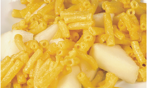 Peel and cut up a pear and add it in. A traditional take on this would use it in a mac & cheese recipe using blue cheese.