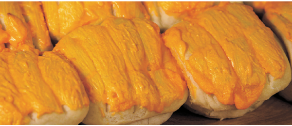 Get a loaf of heat-and-serve dinner rolls. Prepare cheese sauce by heating normal amount of butter with 1 tbsp. milk and one cheesepacket. Use a pastry brush to cover the rolls. Bake them per instructions, but don’t let the cheese burn.