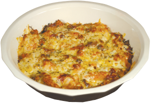 Assemble and Bake» Preheat oven to 450 degrees.» Add peppers, olive oil, and parsley or basil to sauce. Stir well.» Mix rigatoni and sauce, and blend well.» Place pasta in a large, shallow baking dish, or individual baking dishes. Ideally, the pasta should be only 1 to 2 noodles deep.» Spread the Fontina cheese over the pasta.» Sprinkle Parmesan over the pasta, then sprinkle on the oregano.» Sprinkle top lightly with coarse sea salt.» Bake 20 to 30 minutes, until cheese is golden brown and bubbly.» Let cool 15 minutes before eating.