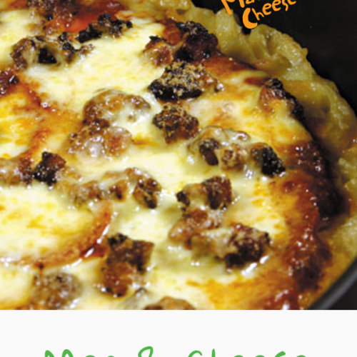 What’s the dullest thing about pizza? The crust! So why not replace that bland doughy stuff with noodles and cheese? This recipe makes a deep-dish pizza that you eat with a fork. Just add your favorite toppings and enjoy!Serves 4 to 6