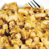 Notes» For some reason this seems to work best for the kind of mac & cheese you get at deli counters; in the end, it depends of course on the particular kind your deli has – you’ll just have to try it!» Certain homemade recipes and certain frozen brands may also work – generally saucy ones work better; not recommended for boxed mac & cheese.» This works best if the mac & cheese is already at room temperature or warmer.» No need to add oil or butter, the cheese should have plenty.» Make sure you regularly flip over all portions of the mac & cheese, otherwise you’ll get pieces burnt to black.» Remove from the pan as soon as you’re done cooking.» Cooking this way will cause the mac & cheese to reduce in size, so be sure you start with enough.